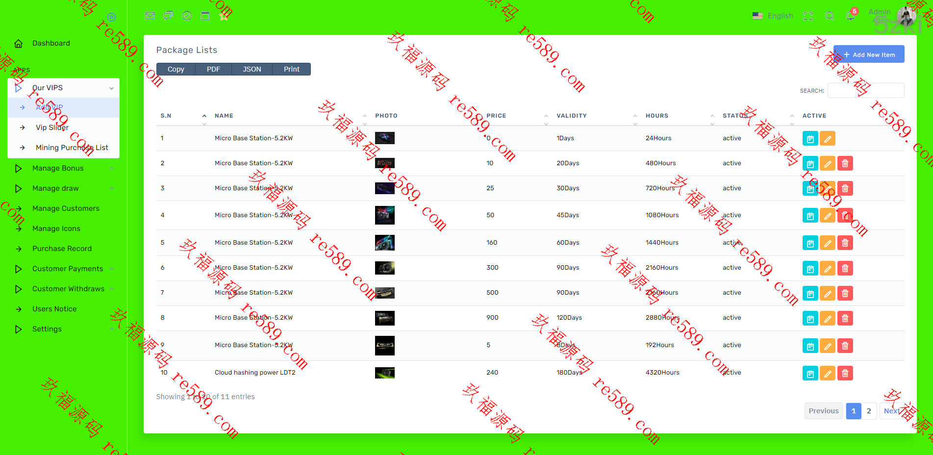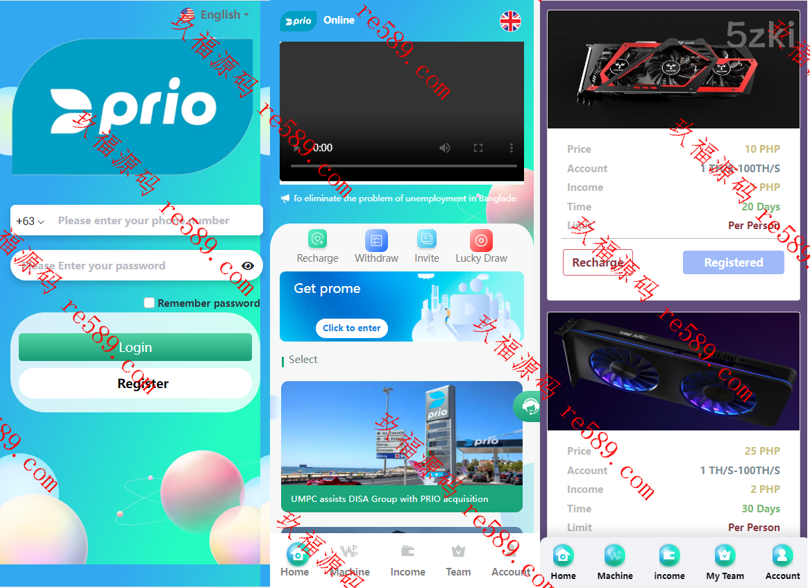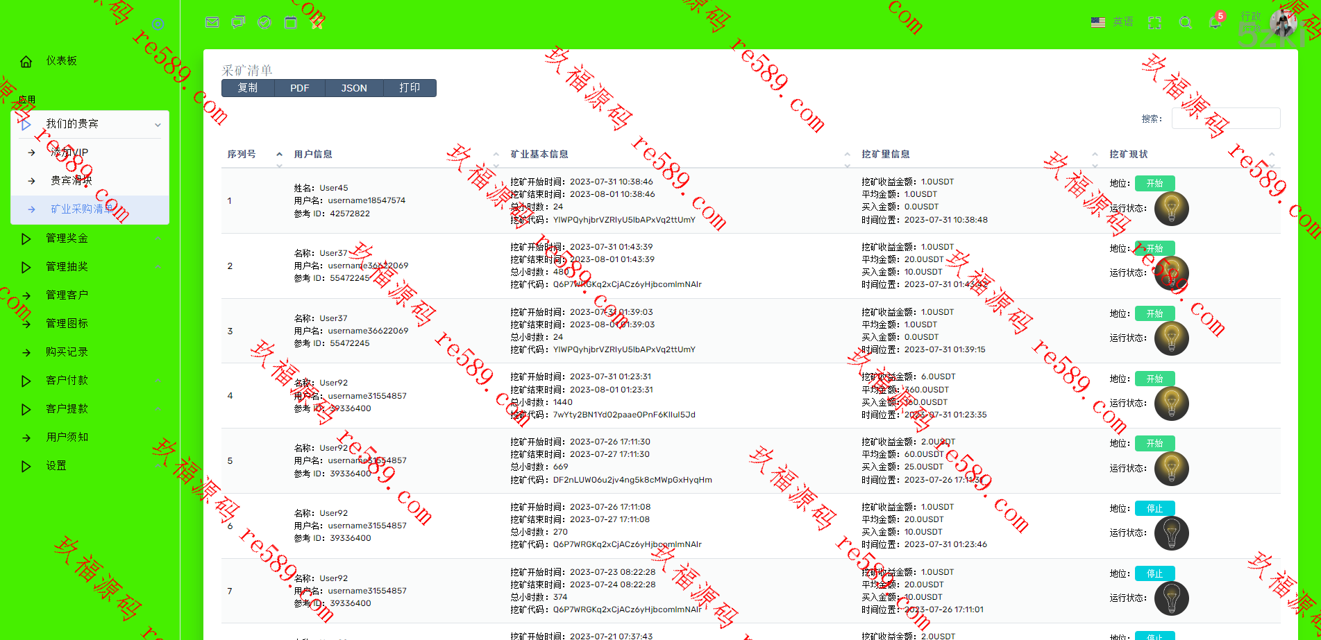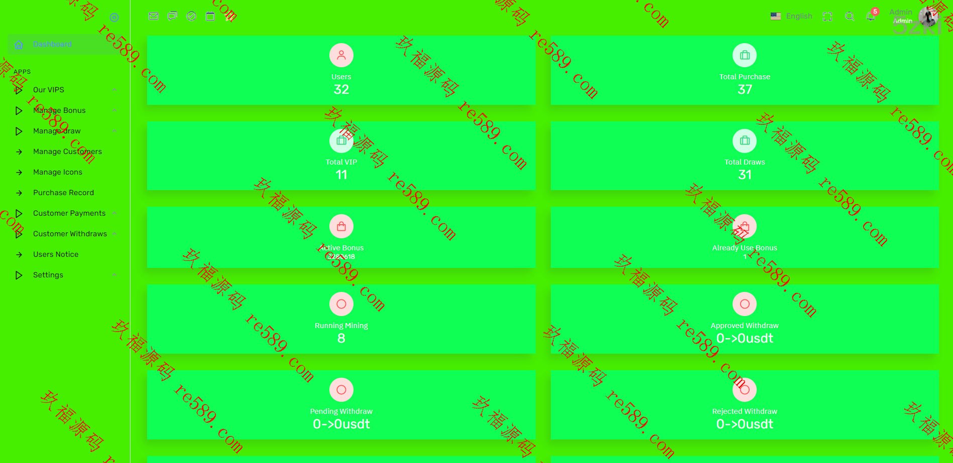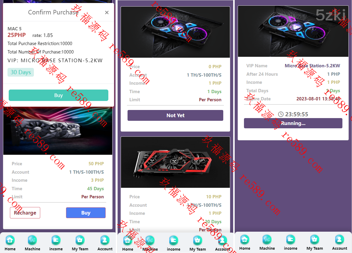 此套是纯国外盘版的矿机投资系统,前后台都是英文的