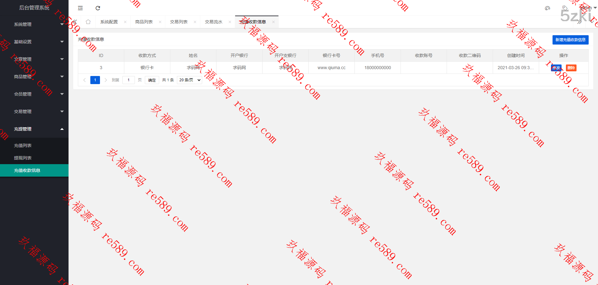 支付管理:支付订单 支付接口 充值卡管理 生成充值卡