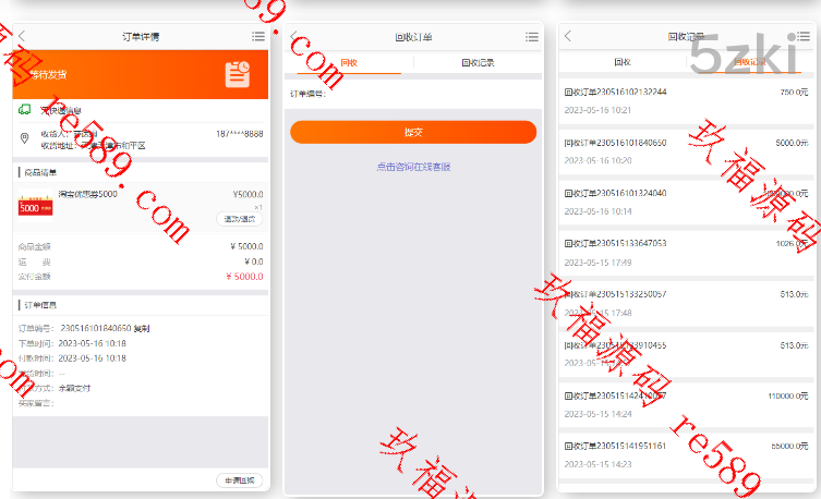回收系统直接集成系统不需要二开搭建,前台提交后台订单直接回收,新增功能每个商品可设置回收折扣