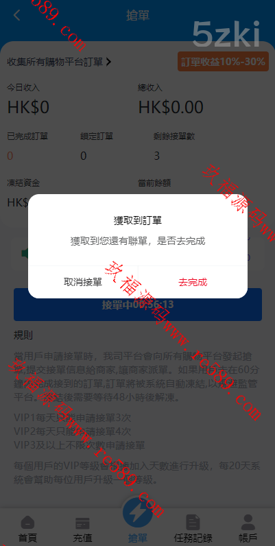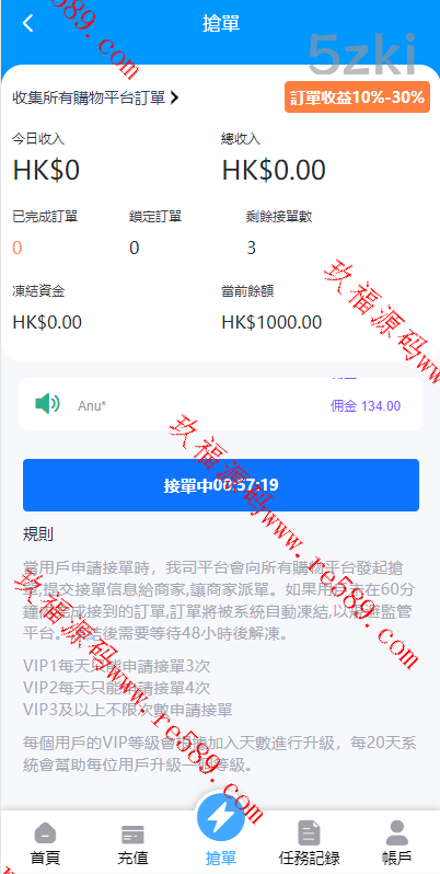 二次开发版抢单刷单系统,支持简体和繁体双语言。功能包括倒计时抢单,并且后台可指定派单、连单和卡单操作。