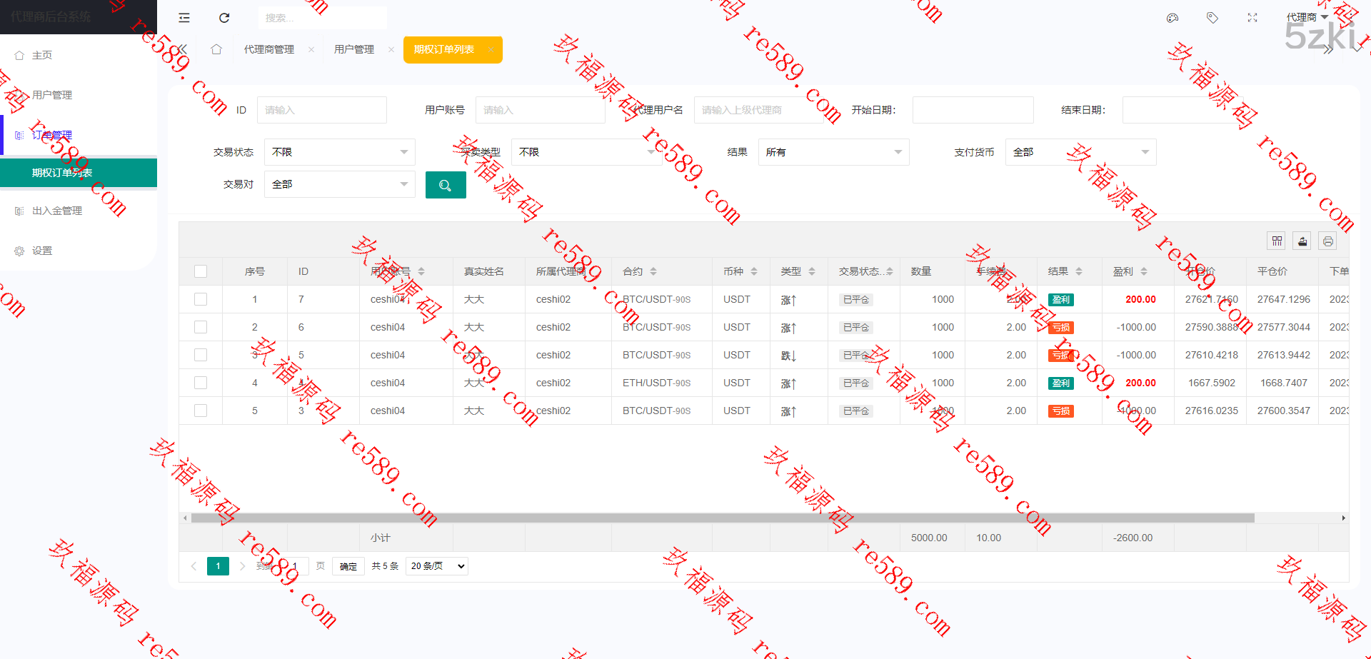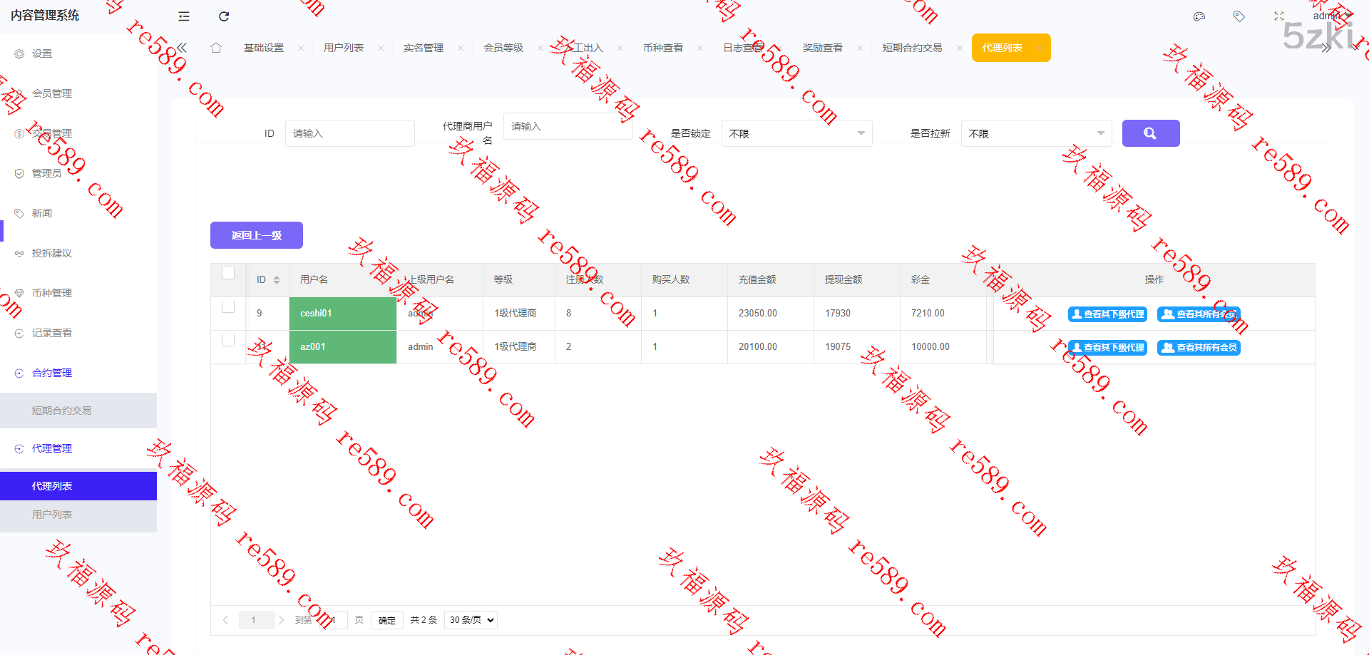 6.支持代理后台,增加代理线各项数据展示列表