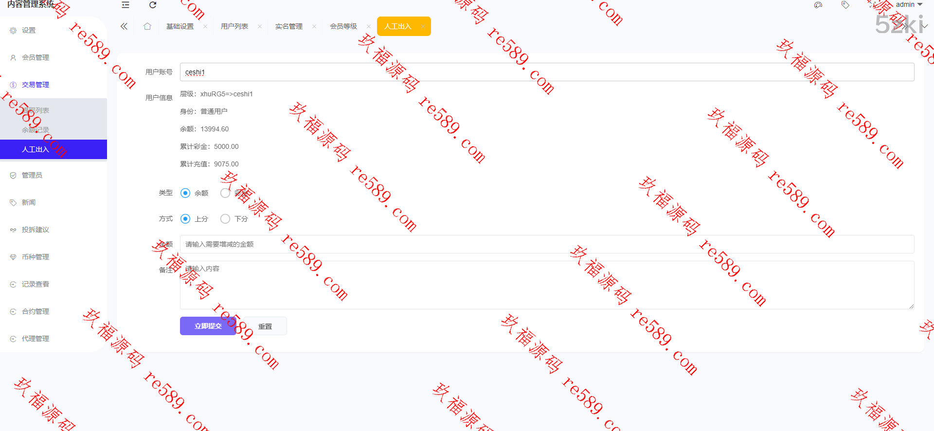 4.后台增加手动上分下分功能