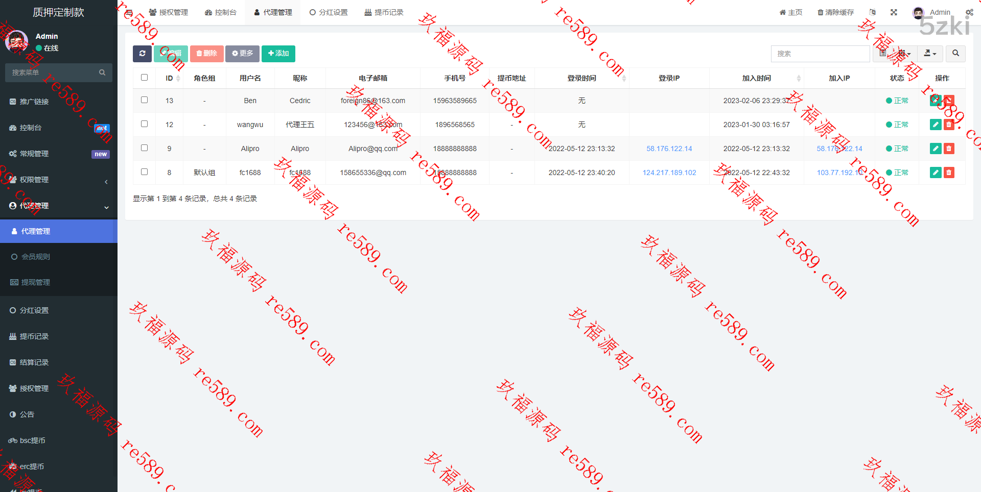 Back-office functions are very complete Dividend mode Dividends are paid four times a day Rolling interest mode Depending on the interest rate of the pledged period