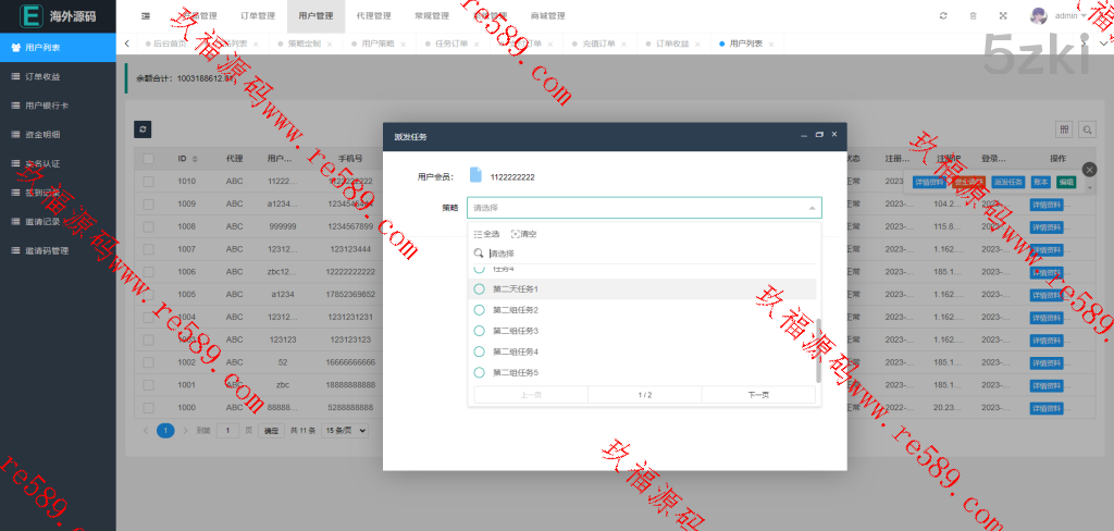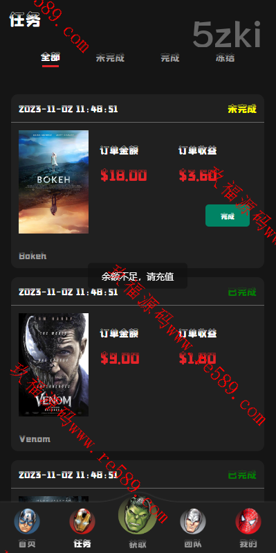 各国语言漫威电影刷单系统,配备独立的代理后台。系统支持用户策略设置,如注册送礼等功能。前端使用UniApp开发并附带源码,后端基于ThinkPHP框架。